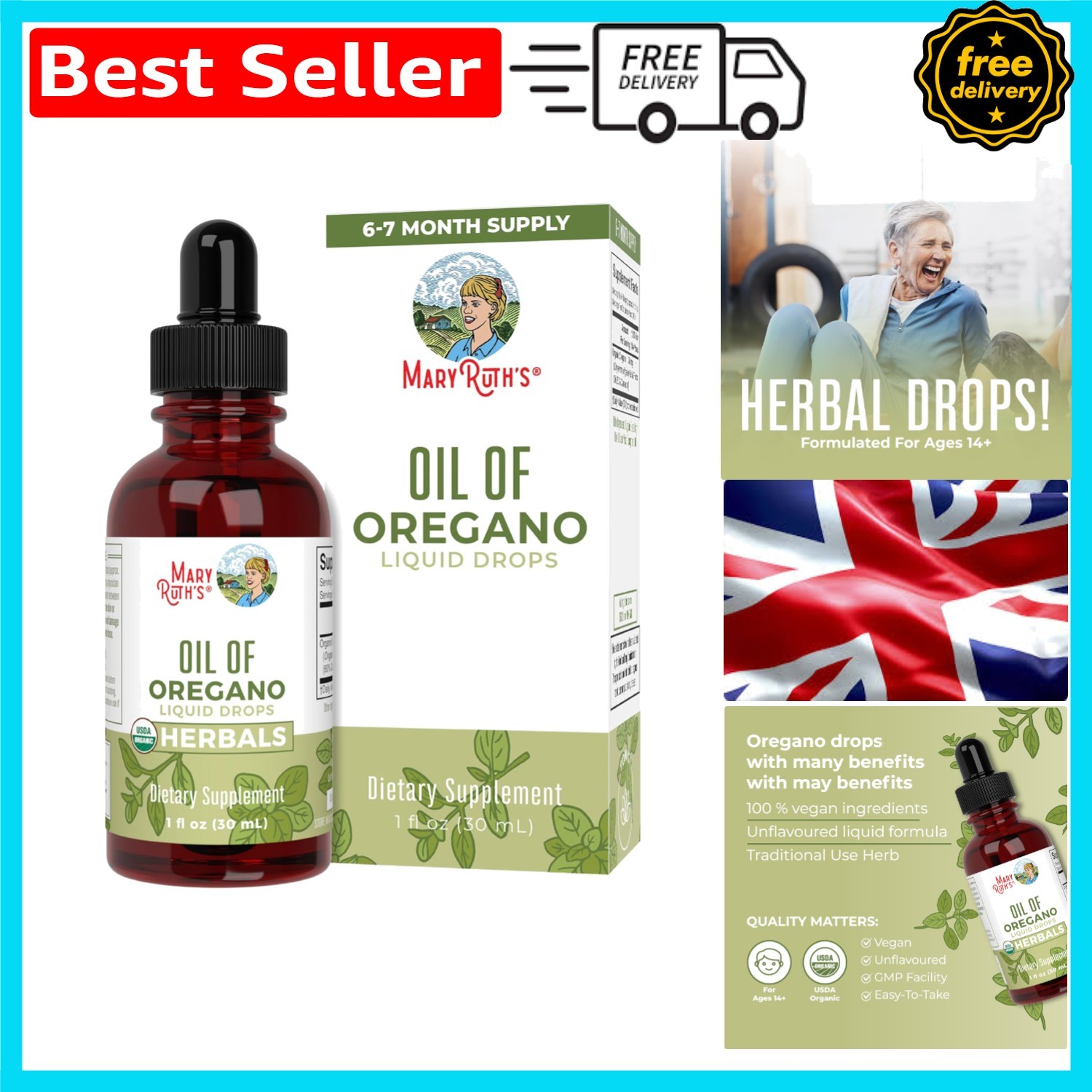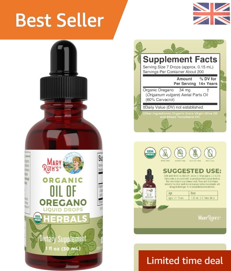 Mary Ruth's Oil of Oregano Drops - 30ml, No Additives, Pure Wellness