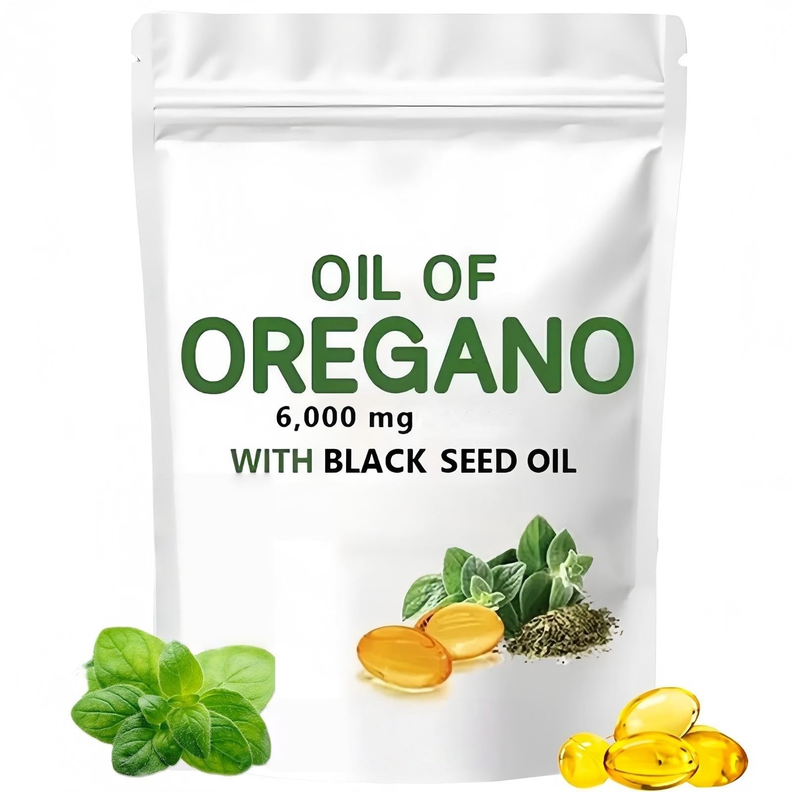 Oil of Oregano Softgels, 2 in 1 6000Mg Oil of Oregano with Black Seed Oil 200Mg,