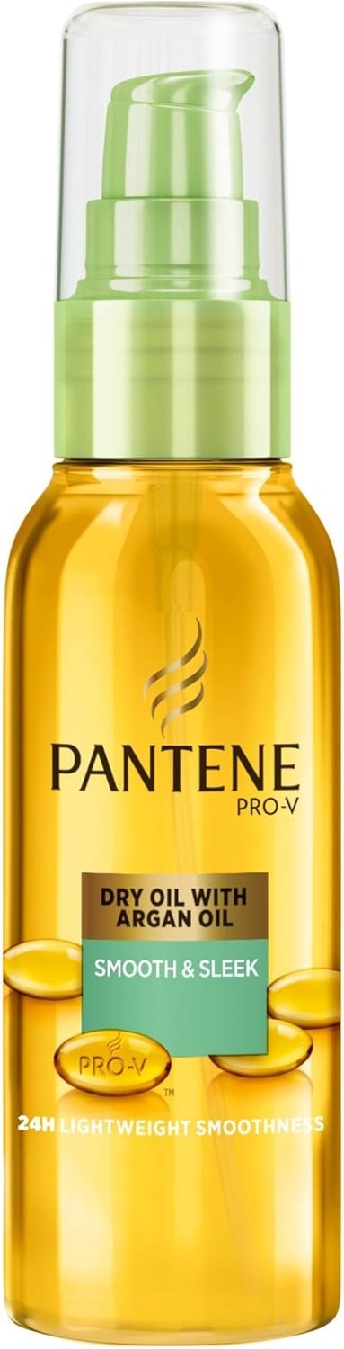 Pantene Pro-V Smooth & Sleek Argan Infused Hair Oil 100ml for Frizzy, Dull Hair, Daily Leave In Nourishing Oil, Tames Frizz, Makes Hair Silky Smooth and Enhances Shine, With Pro-V Nutrients