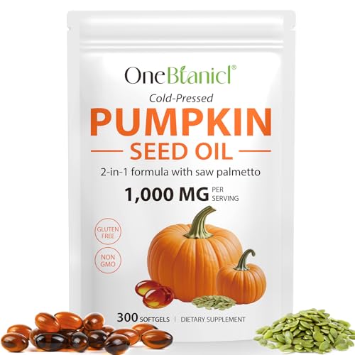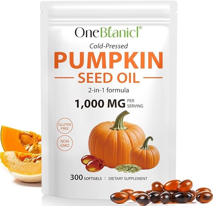 Pumpkin Seed Oil Capsules 1000mg Per Serving - 300 Softgels for Hair & Urinary Support - 2-in-1 Formula, Rich in Zinc & Omega Fatty Acids - Easy-to-Swallow