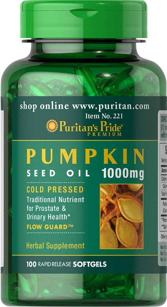 PURITAN'S PRIDE Pumpkin Seed Oil 1000mg, for men, 100 Softgels Capsules UK Based