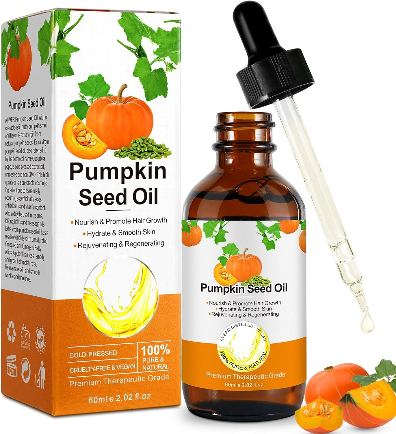 Pumpkin Seed Oil for Hair Growth 60ML- 100% Pure Natural Cold Pressed Hair Growth Oil for Dry Damaged Hair, Strengthen Hair Thickness, Nourish Hair Scalp, Moisturizer Skin.