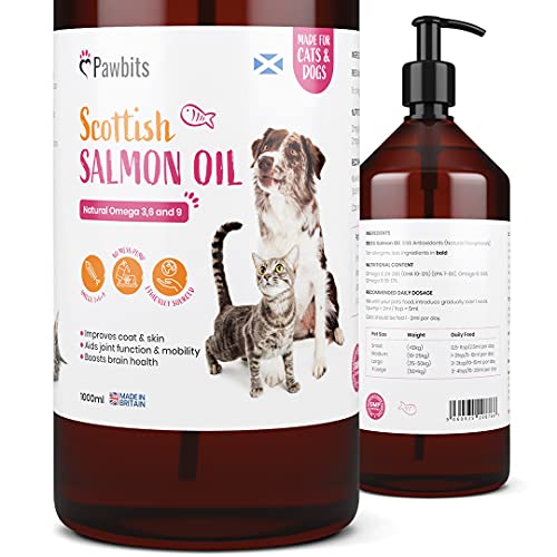 Pawbits 1 Litre Scottish Salmon Oil For Cats & Dogs - Natural Omega 3+6+9, Healthy Coat & Immune System Fish Oil