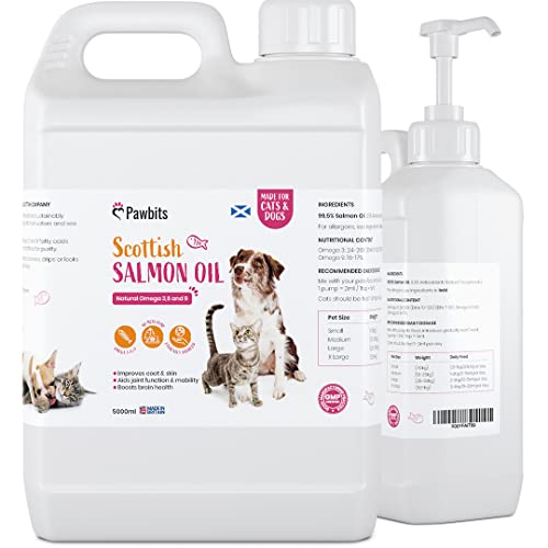 Pawbits 5 Litre Scottish Salmon Oil For Cats,Dogs & Pets - Natural Omega 3+6+9, Healthy Coat & Immune System UK Made Suitable For Horses and Ferrets.