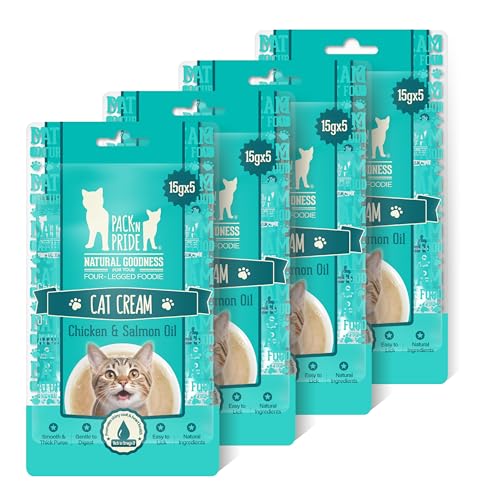 PACK’N PRIDE Cat Treats, 20 x 15g (300g Total) Creamy Cat Lick Sticks -Chicken&Salmon Oil Flavor, Rich in Omega-3, Keeping Cat's Coat Shiny&Soft