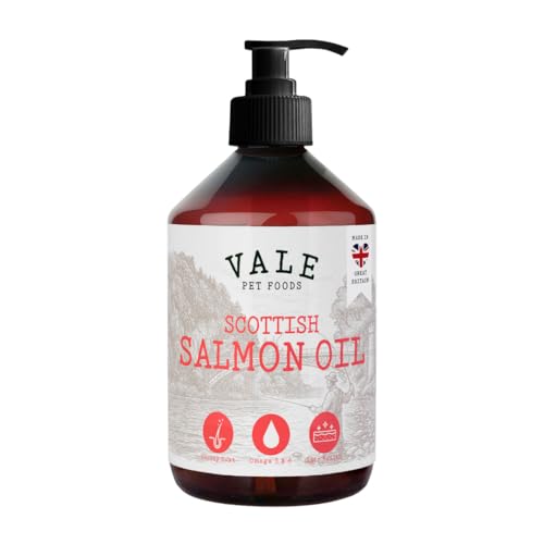 Vale Pet Foods Salmon Oil for Dogs UK - Omega 3 6 9 Supplement Dog Food Topper for Joints Skin, Coat, Heart Health & More - Natural Fish Oil for Dogs, Puppy, 500ml