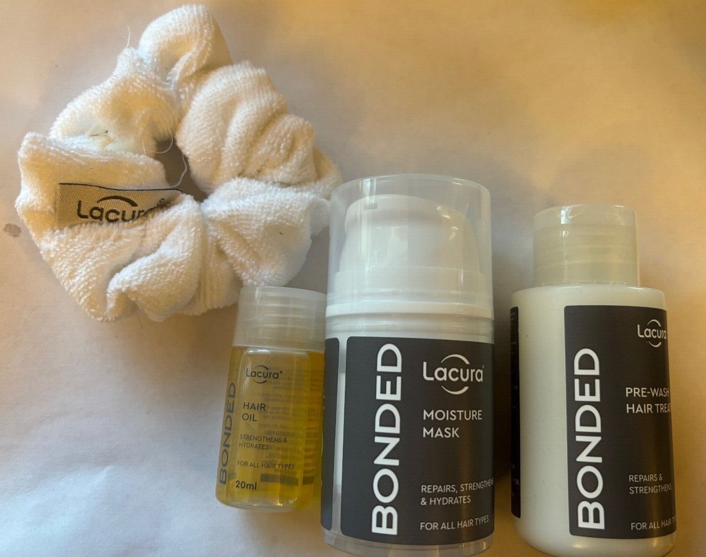 Lacura Bonded Set Pre-wash 100ml ,Moisture Mask Hair Oil 20ml, Scrunchie Olaplex