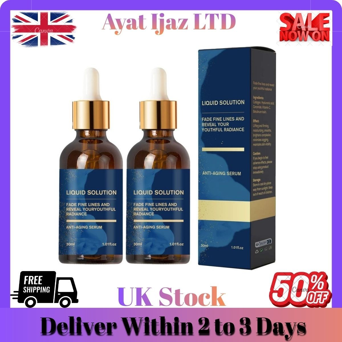 2PCS Olavita Serum Anti Aging Liquid Solution Face Lifting Skin Plumping Firming