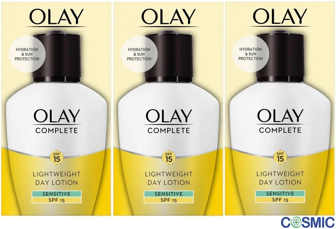 3 x 100ml Olay Complete Lightweight 3in1 Moisturiser Sensitive SPF 15