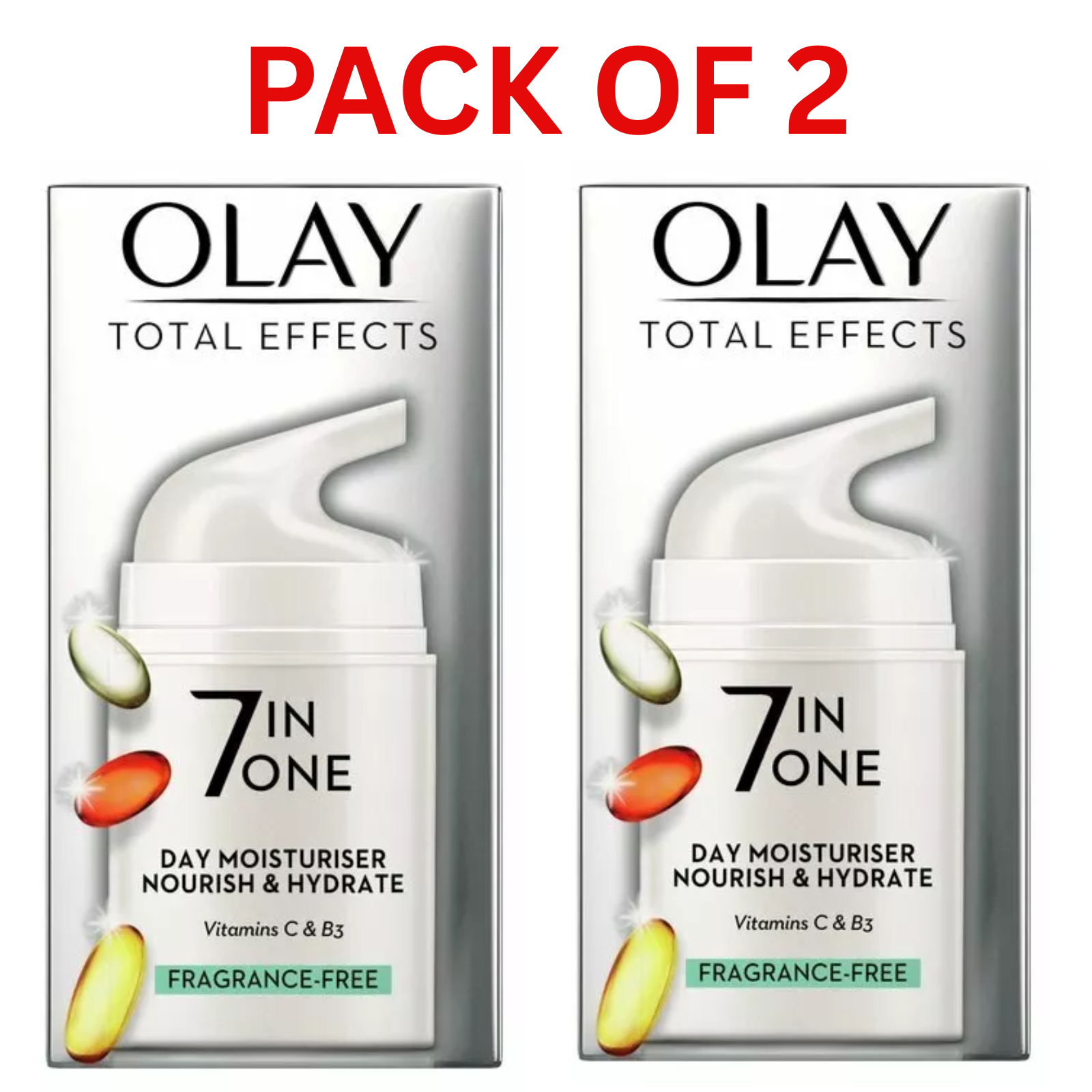 Olay Total Effects | 7 in 1 Day Moisturiser | Fragrance Free | Pack of 2 | 50ml