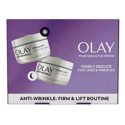 Olay Anti-Wrinkle Firm & Lift Giftset: SPF15 Day Face Cream 50ml + Night Cream Moisturiser 50ml, Anti-Ageing Skin Care