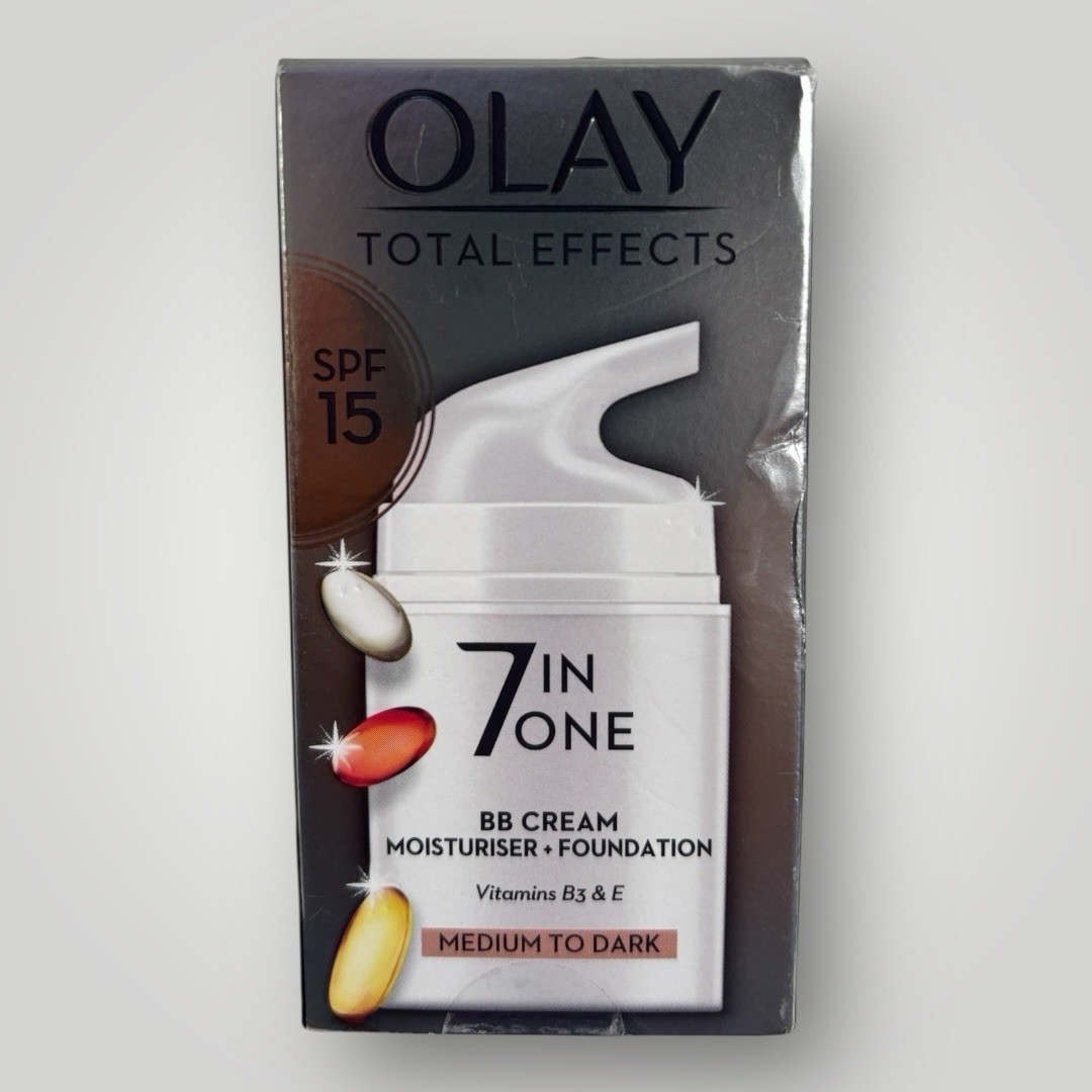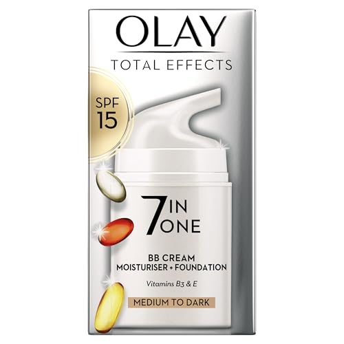 Olay Total Effects SPF15 BB Day Face Cream, Medium to Dark 7-in-1 Skin Care Moisturiser Foundation with Vitamin C & Niacinamide Hydration, Glow and Anti-Wrinkle, Nourishes and Protects in 1 Step, 50ml