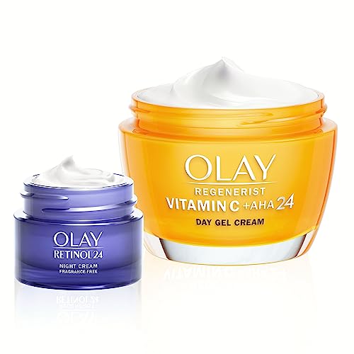 Olay Day & Night Set Vitamin C + AHA 24 Day Gel Face Cream, 50g, and Retinol 24 Night Face Moisturiser, 15g, Instantly Hydrates For 24H