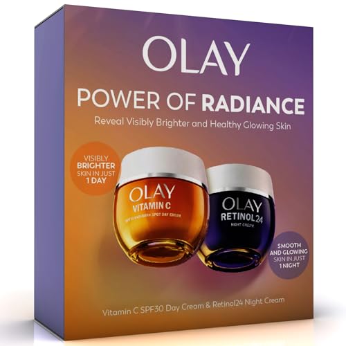 Olay Power of Radiance Giftset: Vitamin C Anti-Dark Spot SPF 30 Day Cream Face Moisturiser 50ml + Retinol 24 Night Cream 50ml, Brightening Glow Skincare for Women