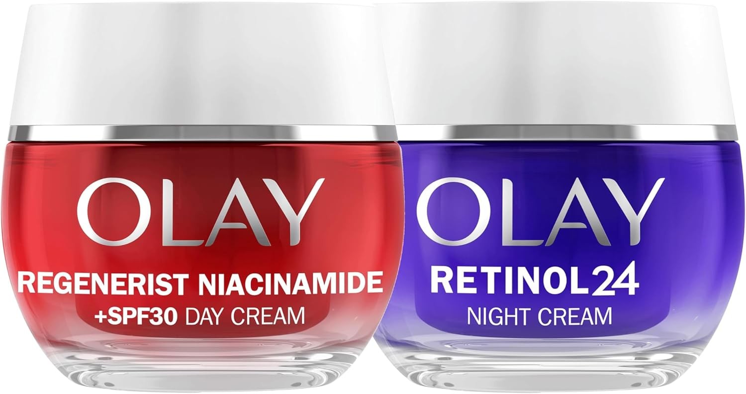 Olay Regenerist Niacinamide Day Cream Face Moisturiser SPF 30 50ml + Retinol 24 Night 50ml, Skin