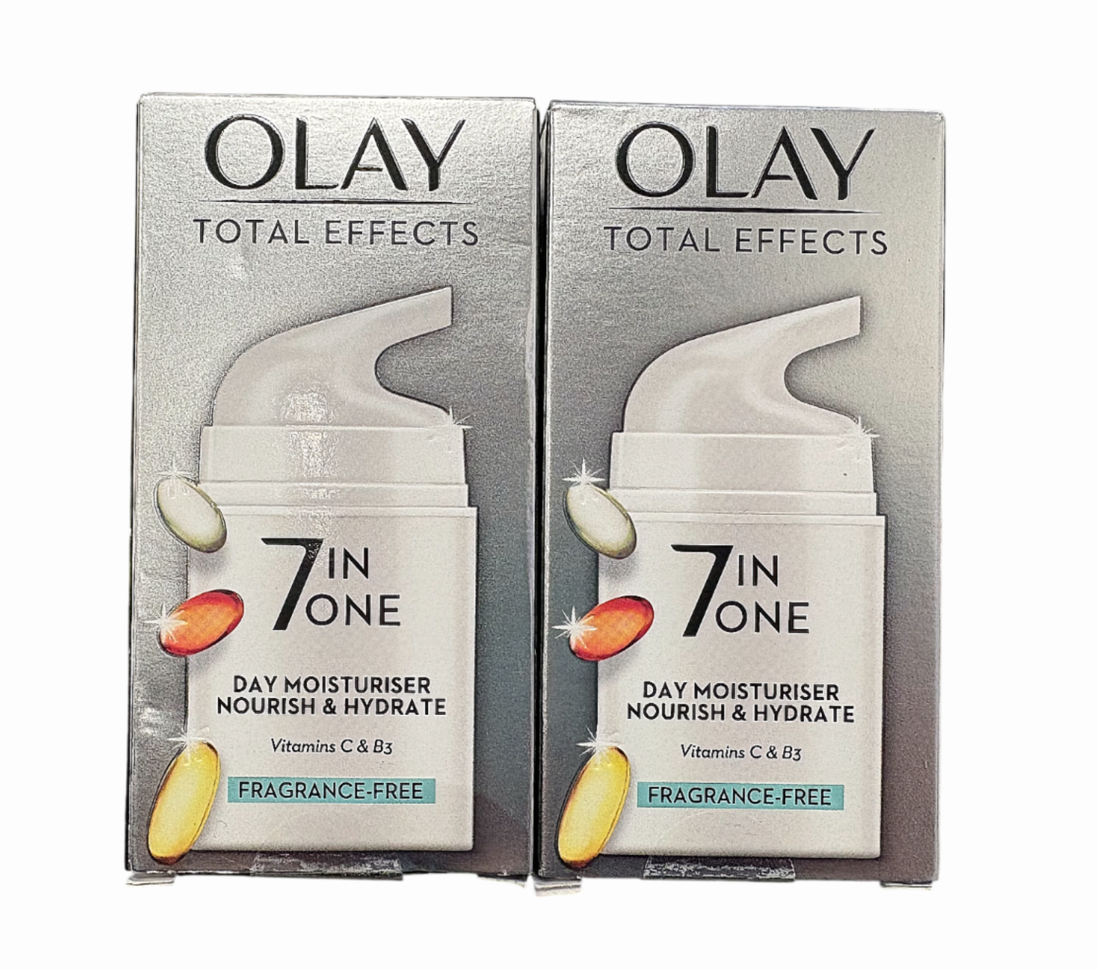 Olay Total Effects | 7 in 1 Day Moisturiser | Fragrance Free | Pack of 2 | 50ml