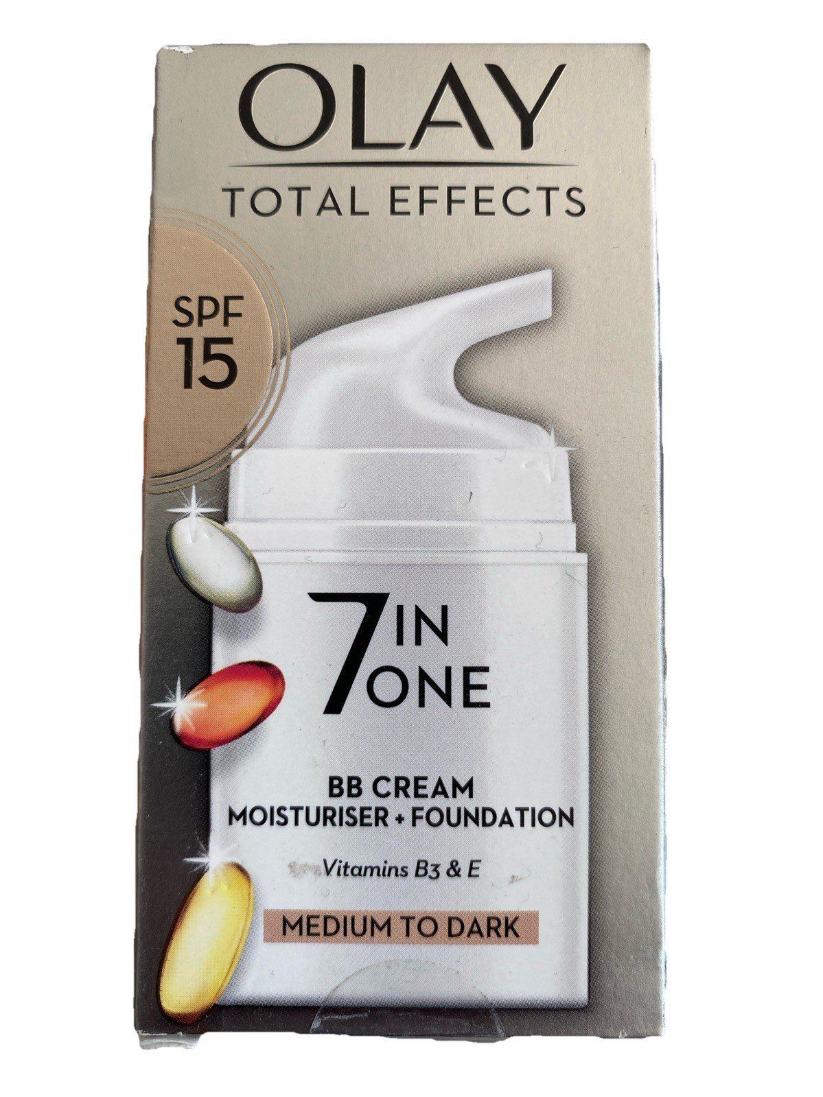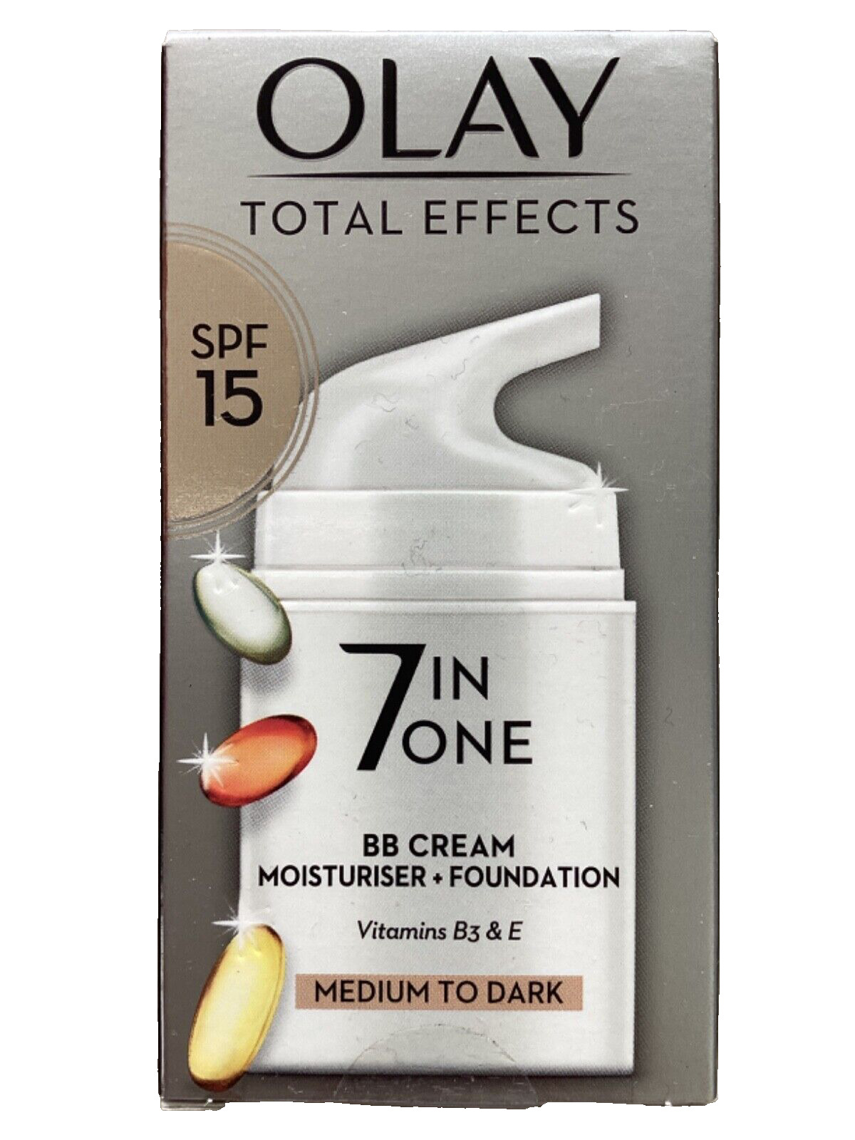 Olay Total Effects SPF15 BB Day Face Cream, Medium to Dark 7-in-1 Skin Care Moisturiser Foundation with Vitamin C & Niacinamide Hydration, Glow and Anti-Wrinkle, Nourishes and Protects in 1 Step, 50ml
