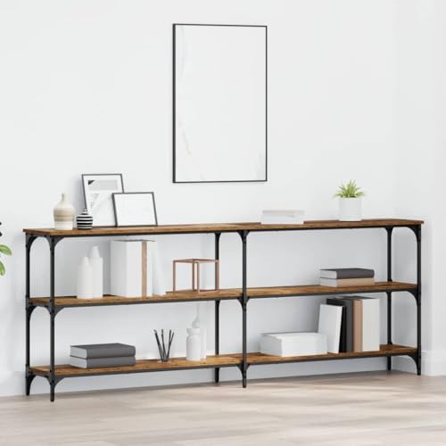 Owoxanthellate Console Table 200 cm Slim Industrial Old Wood Look Engineered Wood & Steel 3 Shelves Narrow Foyer Hallway Bedroom for Living Room Corridor and Bedroom