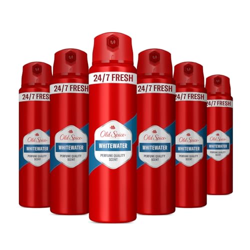 Old Spice Whitewater Men’s Deodorant Body Spray 150ml x 6, 24/7 Fressshhh With Daily Use, Long Lasting Perfume Quality Scent, Odour Protection, 0% Aluminium Salts, Invisible On Black & White