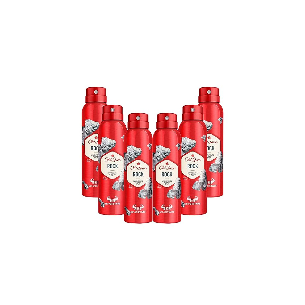 6 x Old Spice Rock Antiperspirant 150 ml Deodorant Spray for Men 48-Hour Protection