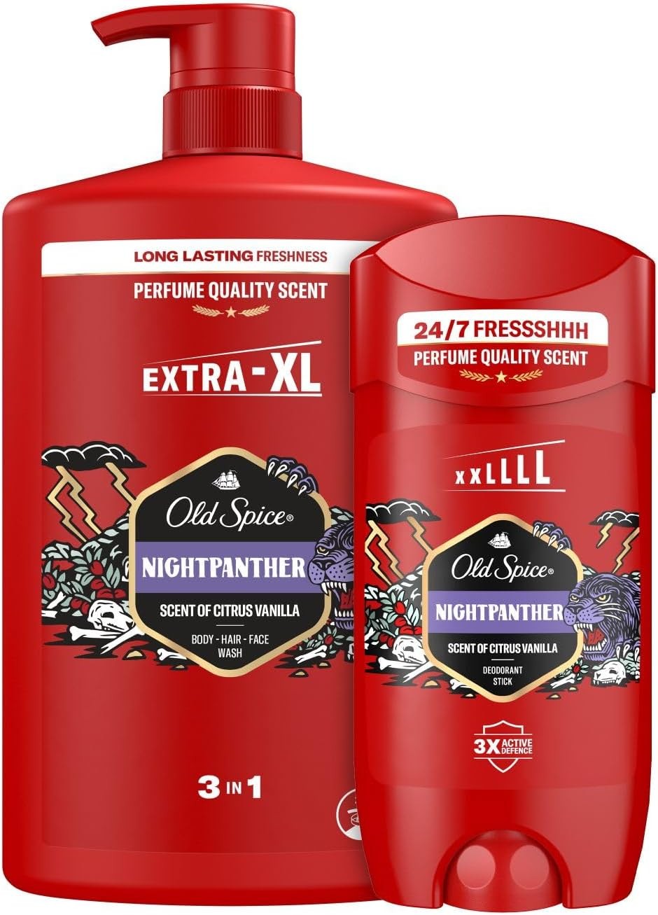 Old Spice Mens Shower Gel and Deodorant Stick Nightpanther Bundle, Value Pack, Body Wash for Men 1000ml and Aluminium Free Roll On Deodorant 85ml