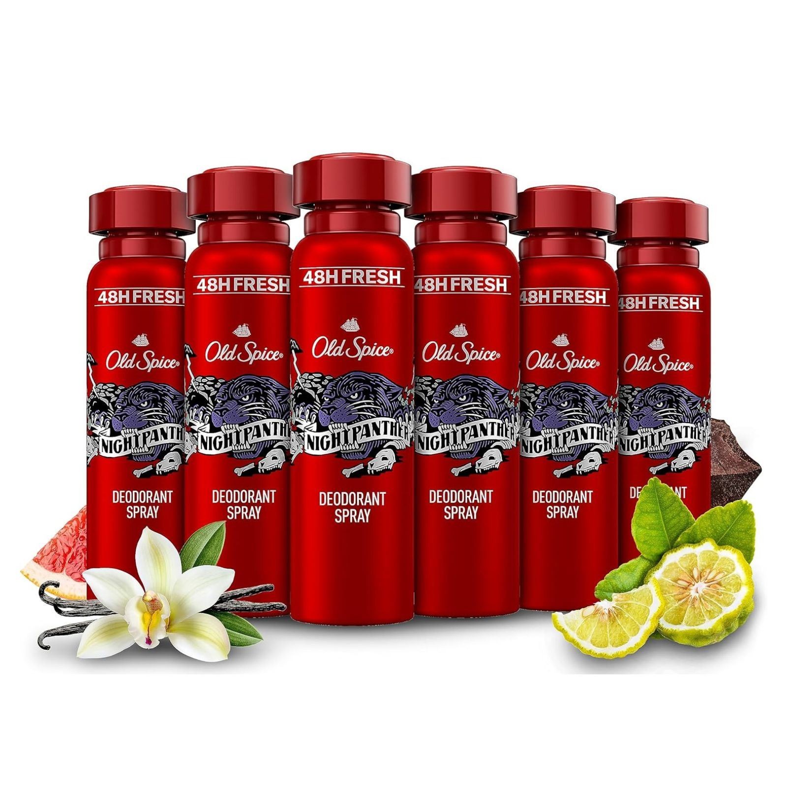 Old Spice Deodorant Body Spray for Men, Nightpanther scent, Multipack 6x150ml