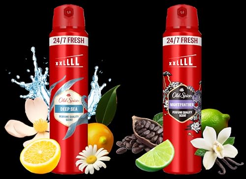 Old Spice Men’s Deodorant Body Spray Bundle, Aluminium Free Deep Sea and Nightpanther 250ml Bodysprays for Men, Long Lasting Perfume Quality Scent Value Pack