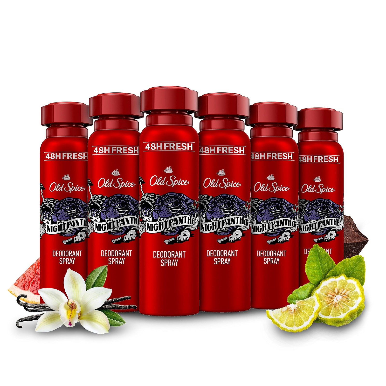 Old Spice Night Panther Men’s Deodorant Body Spray ml, Aluminium Free, Long Lasting Perfume Quality Scent, 48H Fresh, Anti-White Mark and Yellow Stain,Pack of 6