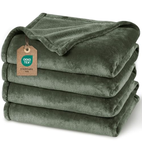 BEAUTEX Fleece Throw Blanket for Couch Sofa or Bed Throw Size, Soft Fuzzy Plush Blanket, Luxury Flannel Lap Blanket, Super Cozy and Comfy for All Seasons (Olive Green, 50" x 60")