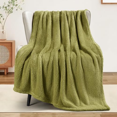 YUSOKI Olive Green Faux Fur Throw Blanket, 2 Layers, 50" x 60" Cozy Plush Fluffy Blanket for Fall, Bed, Living Room Décor, Baby, Women, Pet