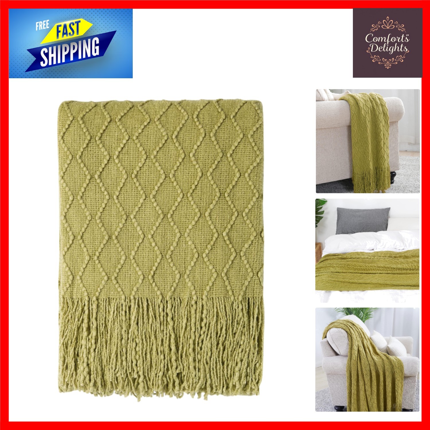 Olive Green Throw Blanket for Sofa Couch Chair Bed, Super Soft Decorative Knitte