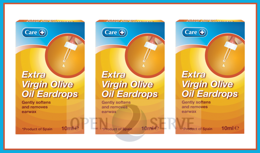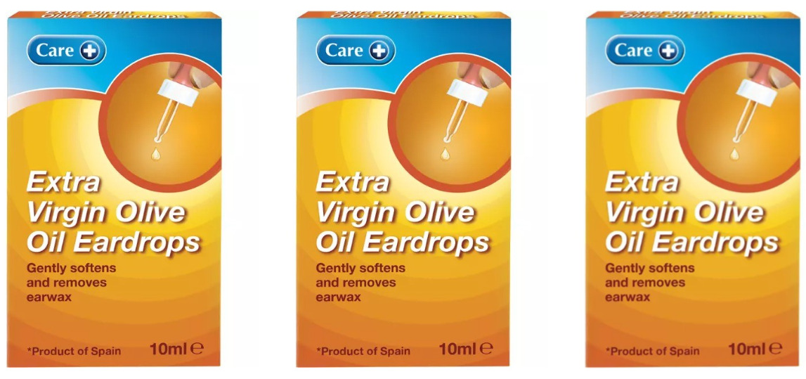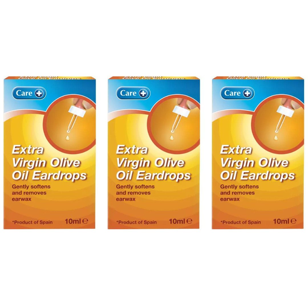 3 x Care Extra Virgin Olive Oil Ear Drops - Softens & Removes Earwax - 10ml