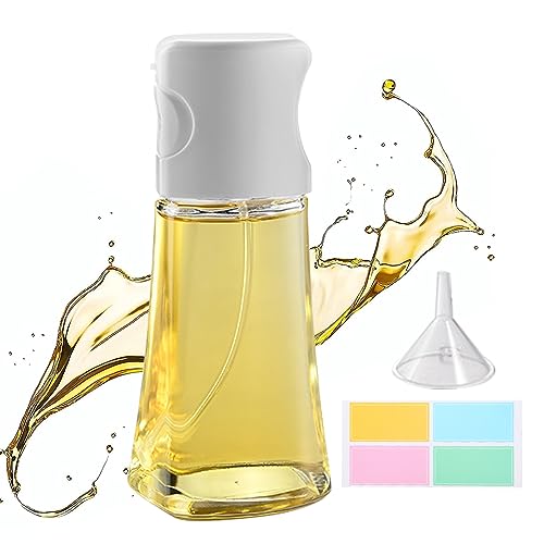 Fisynug Oil Sprayer,220ml Glass Olive Oil Spray Bottle for Cooking Air Fryer Oil Dispenser Oil Sprayer Mister with Sticker,Kitchen Gadgets Accessories for Salad Baking Vinegar Grilling
