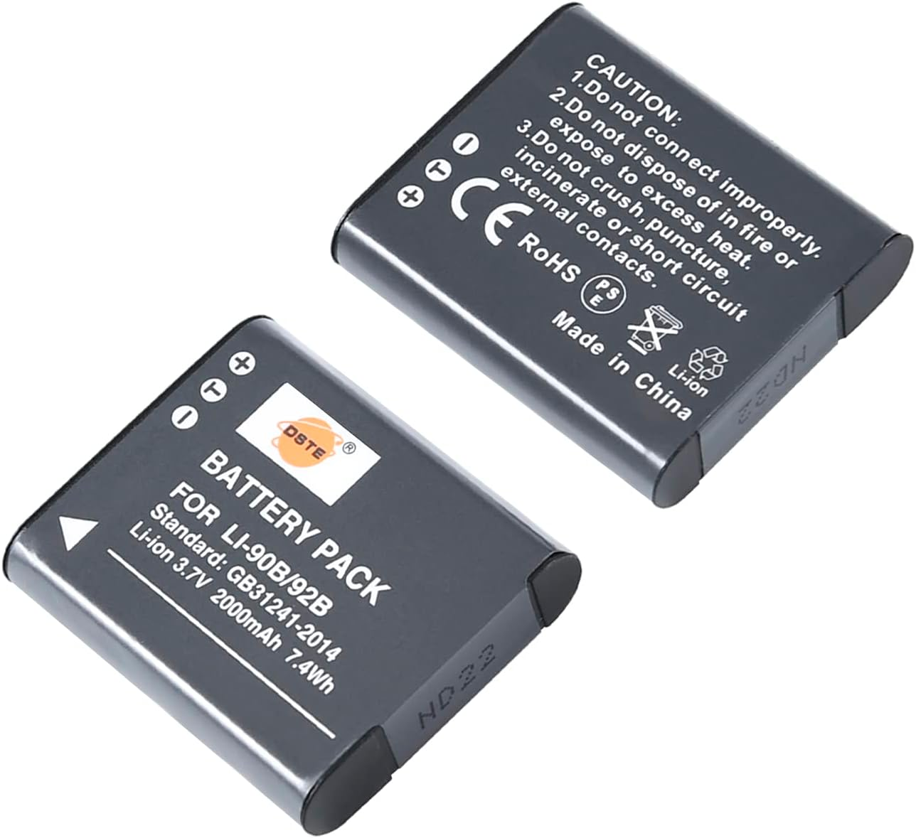 DSTE 2PCS LI-90B LI-92B (2000Mah/3.7V) Battery Compatible for Olympus SH-1