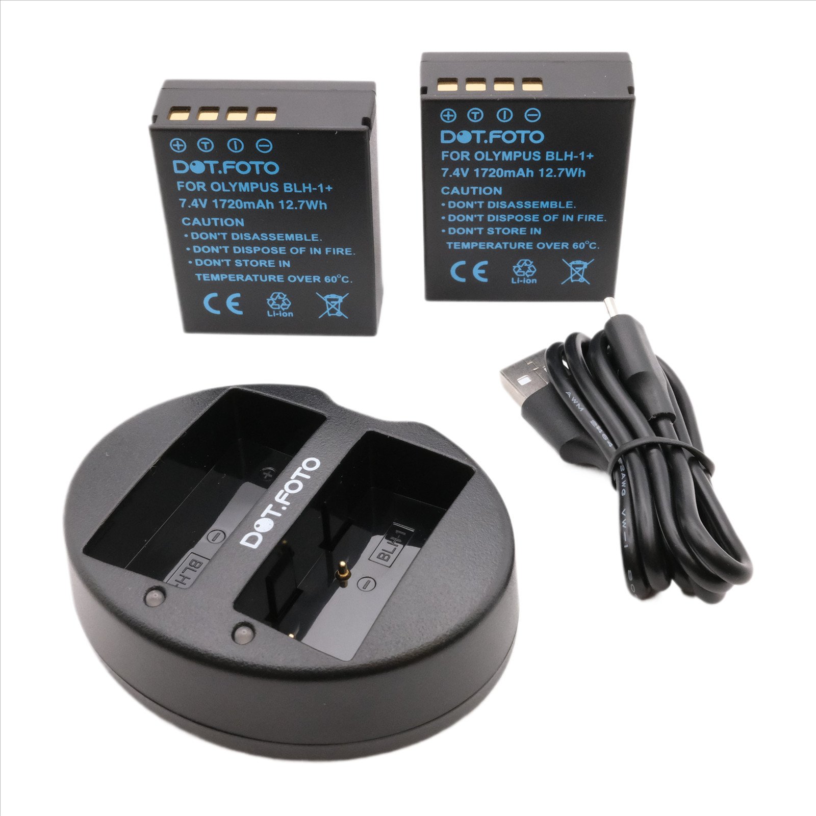 Dot.Foto BLH-1 1720mAh Battery x2 & BCH-1 type USB Dual Charger for Olympus