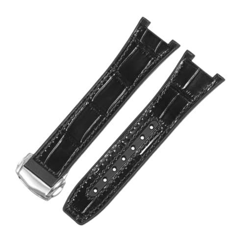 ROUREOX 24mm Handmade Rubber Leather Watch Strap Butterfly Buckle Adjustable Soft Leather Watch Band Accessories for Omega Constellation-Black + Silver