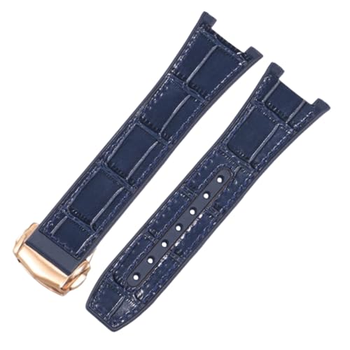 ROUREOX 24mm Handmade Rubber Leather Watch Strap Butterfly Buckle Adjustable Soft Leather Watch Band Accessories for Omega Constellation-Blue + Rose Gold