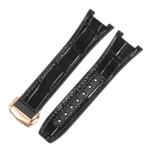 ROUREOX 24mm Handmade Rubber Leather Watch Strap Butterfly Buckle Adjustable Soft Leather Watch Band Accessories for Omega Constellation-Black + Rose Gold