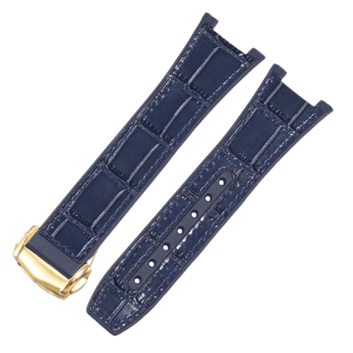 ROUREOX 24mm Handmade Rubber Leather Watch Strap Butterfly Buckle Adjustable Soft Leather Watch Band Accessories for Omega Constellation-Blue + Gold