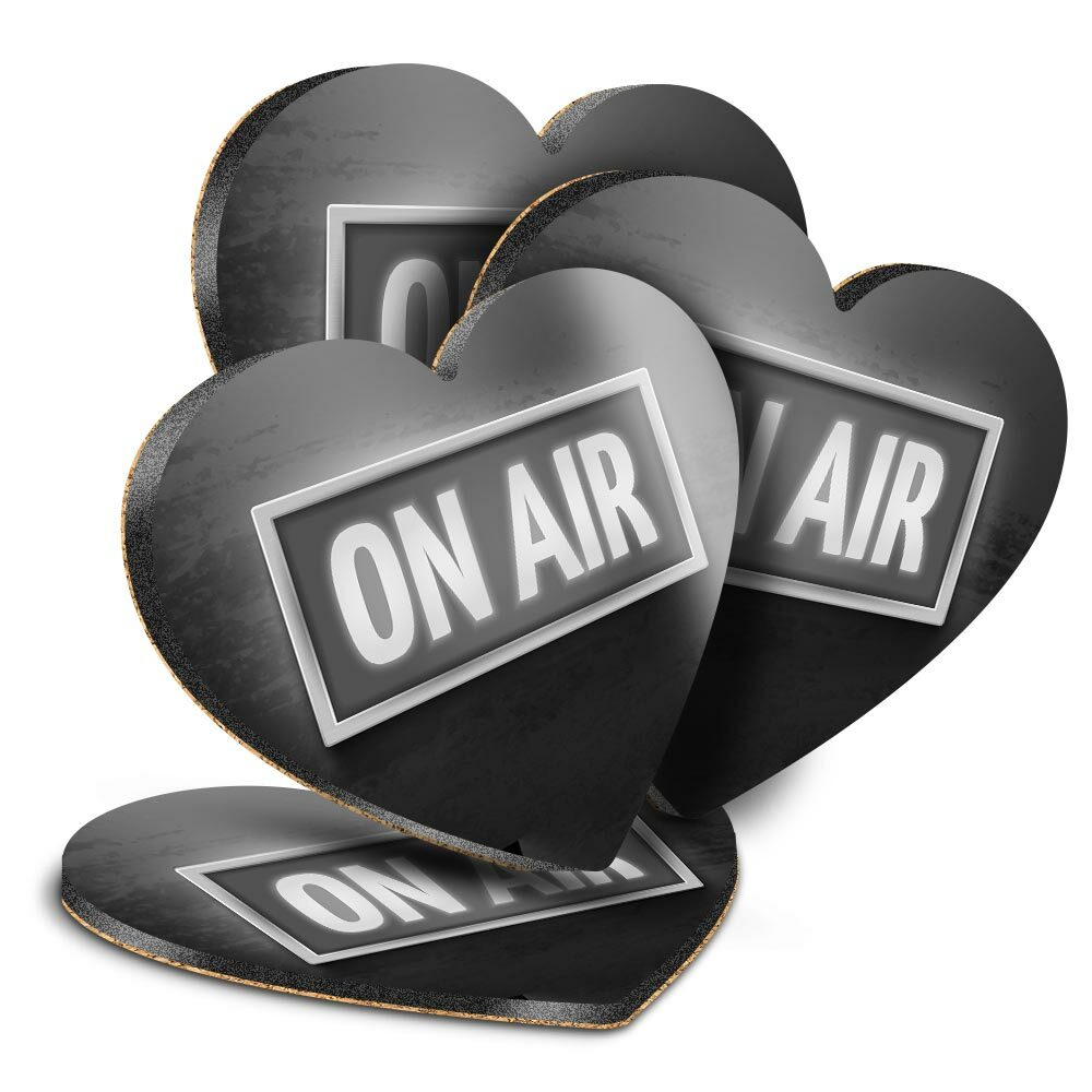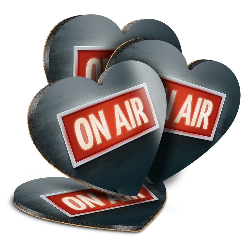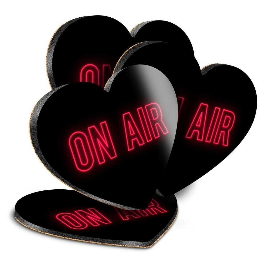 4x Heart MDF Coasters - On Air Radio Studio Sign #14651