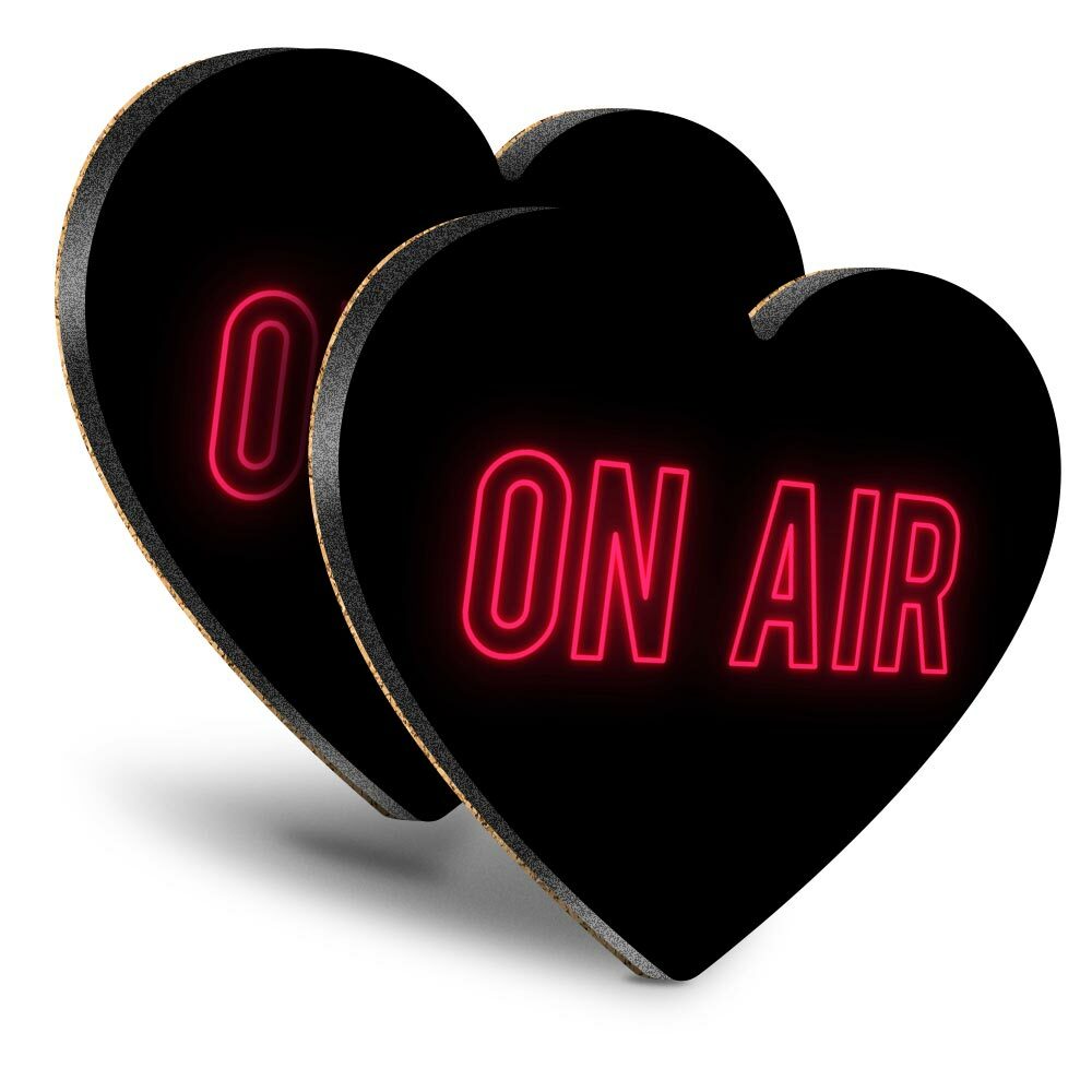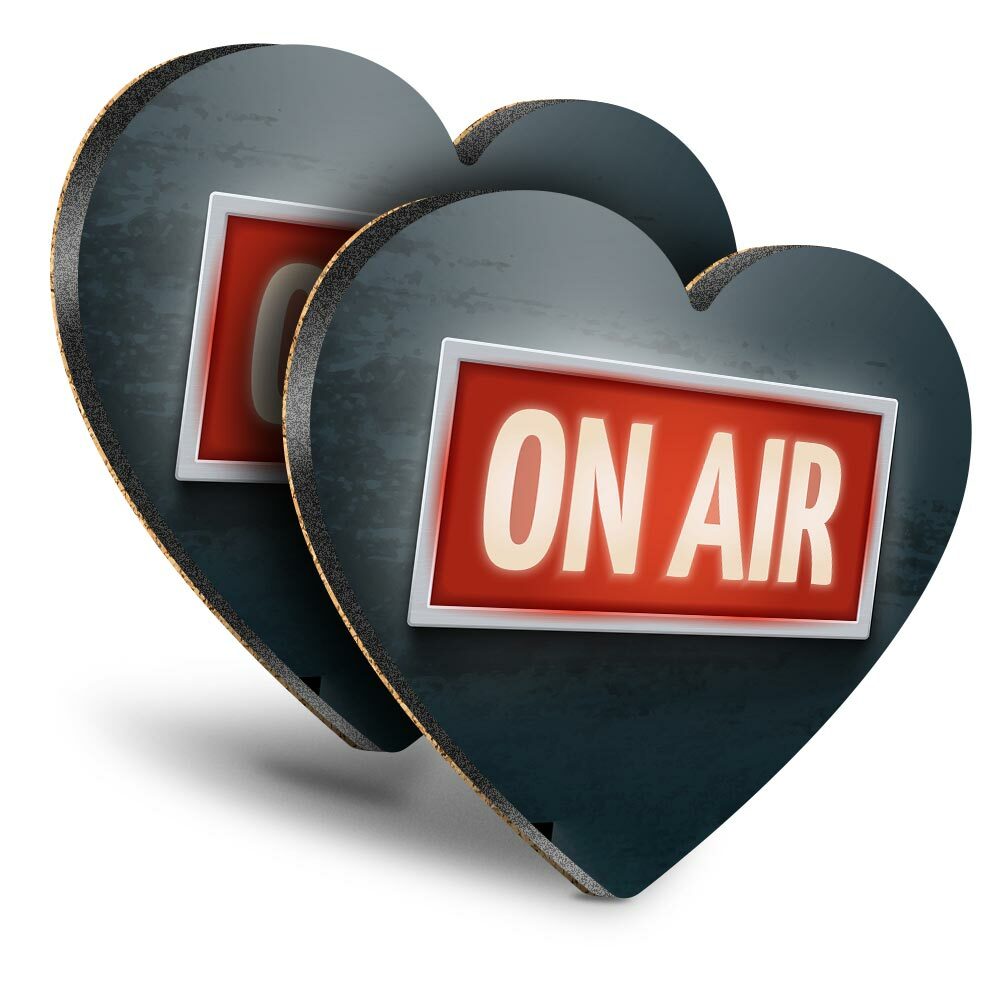 2x Heart MDF Coasters - On Air Radio Studio Sign #14651