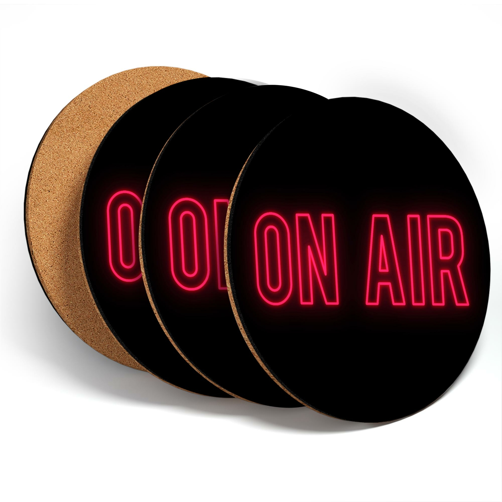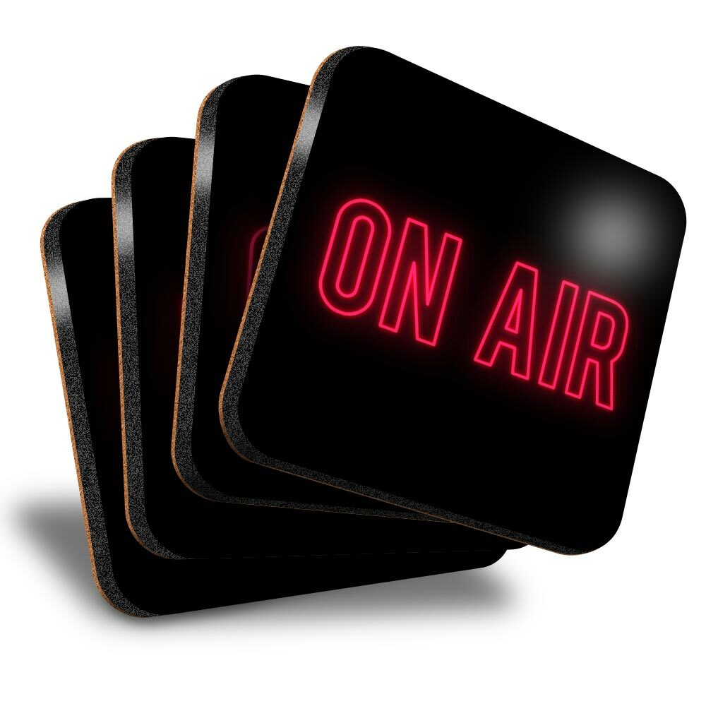 4 x Coasters - On Air Neon Sign Radio TV Studio #45929