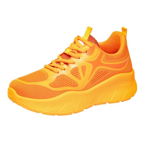 Womens Slip-On Trainers Gym Shoes Athletic Lightweight Non Slip Trainers Lace-Up Casual Shoes Breathable Running Sneakers Flat Walking Active Sneaker Tennis Shoes Workout Orange