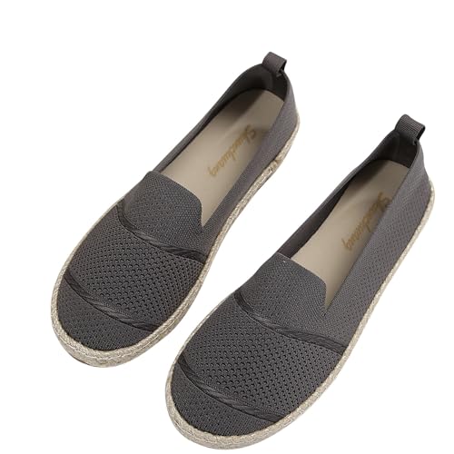 Ladies Casual Shoes Breathable Knitted Walking Shoe Round Toe Breathable Lightweight Comfortable Wide Width Slip On Trainers Gym Sport Tennis Gray