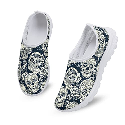Kuiaobaty Sugar Skulls Mesh Sneaker for Walk, Rose Candy Skulls Slip On Spring Summer Gym Trainers Mexico Ethnic Running Sneakers Lightweight