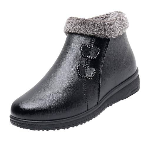 Generisch Snow Boots Women's Waterproof Ankle Boots Flat Short Shaft Non-Slip Winter Boots Fleece Lined Hiking Boots Comfortable Winter Boots Warm Slip-On Boots Barefoot Shoes Running Boots, black, 2