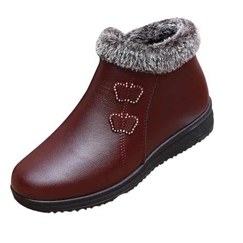 Generisch Snow Boots Women's Waterproof Ankle Boots Flat Short Shaft Non-Slip Winter Boots Fleece Lined Hiking Boots Comfortable Winter Boots Warm Slip-On Boots Barefoot Shoes Running Boots, brown, 2