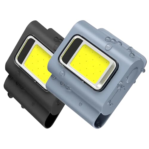 Muzrunq Cob Light 2PCS Hands-Free Waterproof Rechargeable Night Running Light with 6 Light Modes USB Fast Charging Portable Clip on Flashlight for Night Fishing, Night Running, Camping