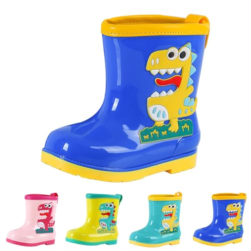 Kids Dinosaur Rain Boots Boys Girls Soft Rubber Sole Wellies Boots Waterproof Non-Slip Cute Wellington Rain Shoes Outdoor Running Walking Easy Pull On Shoes (Blue, 2-3 Years)
