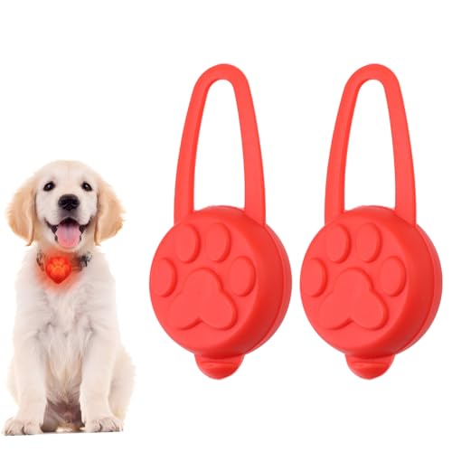 2 Dog Collar Light, LED Dog Tag Light Clip-on Silicone Waterproof Pet Safety Lights 3 Modes Light Up Dog Collars High Visibility Puppy Collar Harness Light for Night Walking Running Camping (Red)